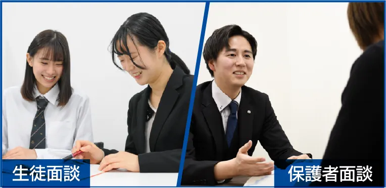 Wingsでは入塾時だけでなく、講習会前や志望校決定時、学習の進捗に応じて、生徒・保護者の方と随時面談を実施しています。生徒一人ひとりに担当講師を付けることで、志望校に向けた学習ペースや計画をいつでも相談できる環境を実現。「生徒が自分で考える」ことを大切にしながらも、プロであり信頼できる大人が側にいることで、安心して志望校合格を目指せます。授業以外で講師と話す時間を設けることは、時に将来の夢やちょっとした悩みなど、本音を引き出すことにもつながります。志望校合格はもちろん、その先の未来についても一緒に考えていきましょう。