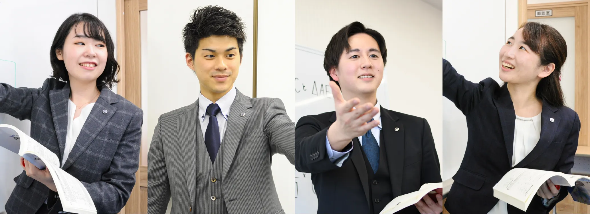 個別指導Wingsの講師は、経験の有無にかかわらず、1~3カ月(平均約1カ月半)程度の初期研修を行い、集団授業の講師と同じ研修に参加します。また初期研修が修了した後も、年間を通じて諸研修に参加し、所属校舎においても担当授業だけでなく、自習対応や模試監督などの業務に携わります。